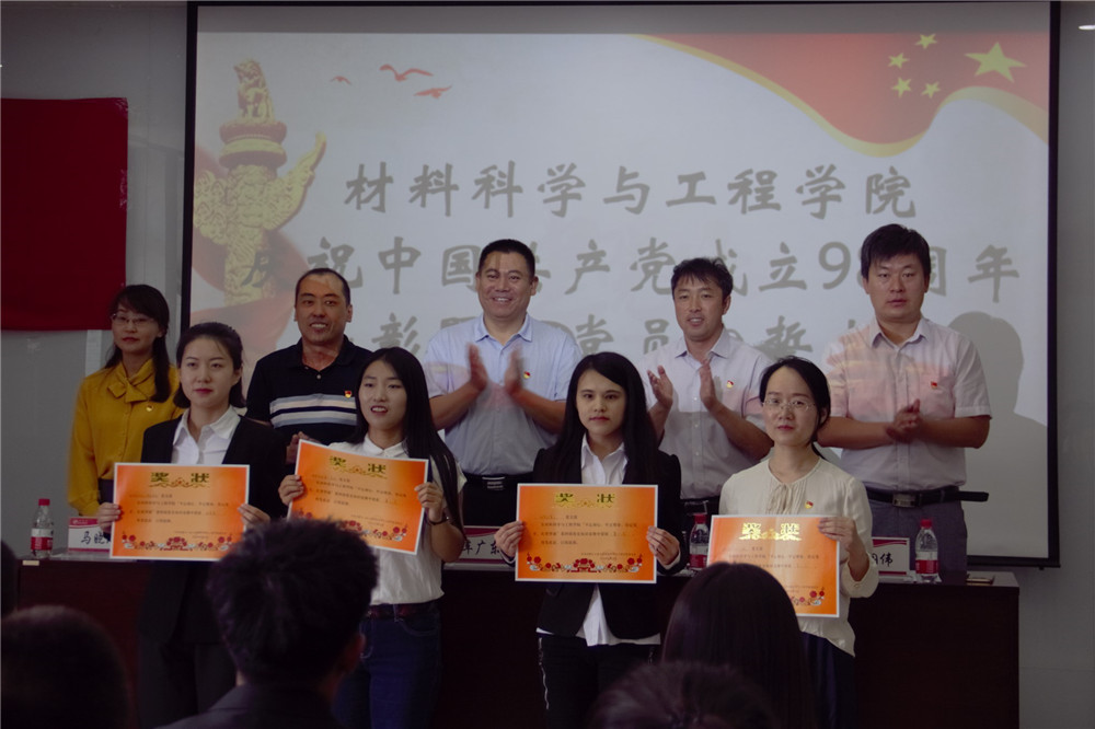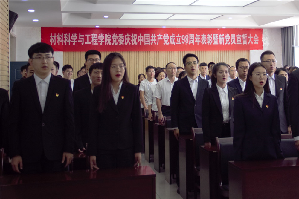 为深入学习贯彻习近平新时代中国特色社会主义思想和党的十九大精神,庆祝中国共产党成立98周年,6月29日上午,材料科学与工程学院党委在新城校区工程技术楼512会议室召开“庆祝中国共产党成立98周年系列表彰暨新党员宣誓大会”。学院党政领导,师生党员代表、受表彰人员代表、入党积极分子百余人参加大会。学院党务秘书、团学办公室副主任马晓凤主持会议。