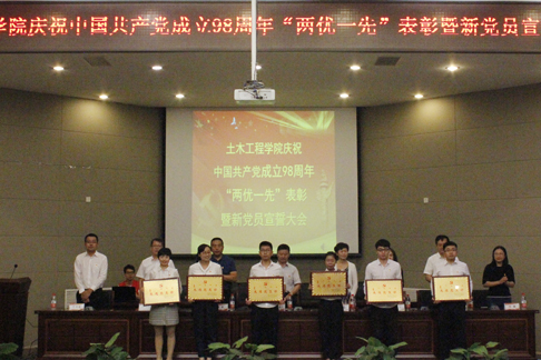 土木工程学院举办庆祝中国共产党成立98周年“两优一先”表彰暨新党员宣誓大会