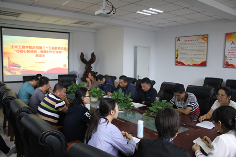 为庆祝中华人民共和国成立七十周年以及第三十五个教师节,9月10日上午,土木工程学院党委在新城校区土木馆C座324室召开“守初心 担使命 做新时代好老师”座谈会,此次活动由学院党委副书记陈辉主持,学院领导及教师代表20余人参加。