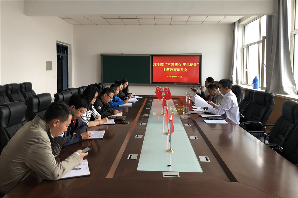为深入学习贯彻习近平新时代中国特色社会主义思想,传达校党委“不忘初心、牢记使命”主题教育动员部署会和推进会要求,学习校党委书记金瑞、自治区第九巡回指导组组长额尔敦必力格讲话精神,9月19日上午,理学院党委在学院516会议室组织召开“不忘初心、牢记使命”主题教育动员会。学院全体领导、教工党支部书记、各系(部)中心主任参加会议,学院党委书记姜鑫主持会议。
