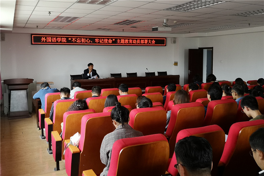 9月19日下午,外国语学院党总支在金川校区电力大楼400室召开“不忘初心、牢记使命”主题教育动员大会。学院领导班子及各党支部书记、全院党员参加会议。