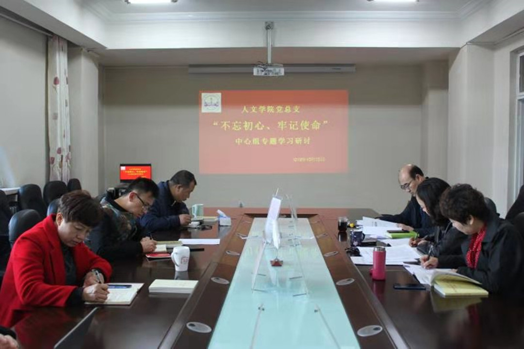 10月15日,人文学院党总支在学院会议室召开“不忘初心、牢记使命”主题教育第四次专题学习会,学院领导班子成员、党总支委员参加,党总支书记马利强主持会议。