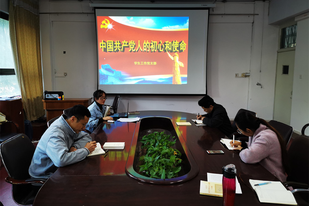为深入开展“不忘初心、牢记使命”主题教育,提升党员的思想自觉、政治自觉、行动自觉,增强责任意识和爱国情怀,10月22日上午,化工学院学生工作党支部在新城校区第三教学楼208组织开展以“中国共产党人的初心和使命”为主题的集体学习。