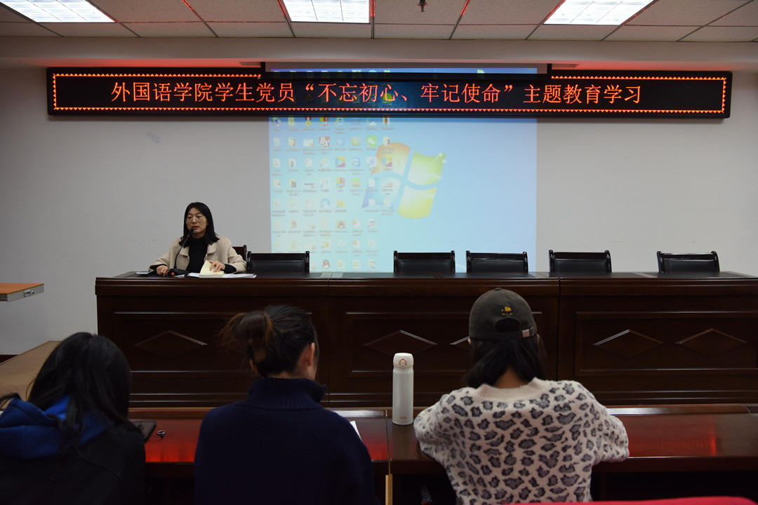 为深入开展“不忘初心、牢记使命”主题教育,10月21日晚,外国语学院在金川校区电力大楼400室组织学生党员开展“不忘初心、牢记使命”主题教育集中学习会,团学办公室辅导员朱梦瑶主持会议,学院全体学生党员参加会议。