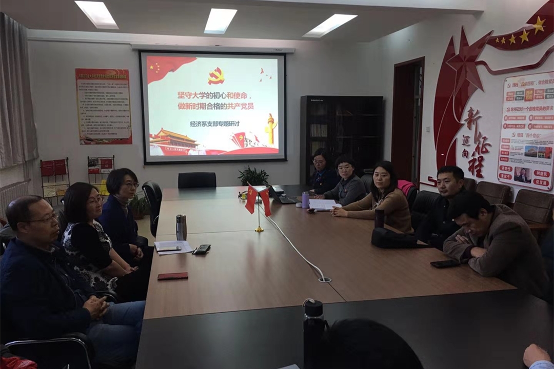 10月24日下午,经济管理学院经济系教工党支部在学院219研讨室开展“不忘初心、牢记使命”主题教育专题研讨。经济系教工支部全体党员参加。学校主题教育第八督导组到会指导。