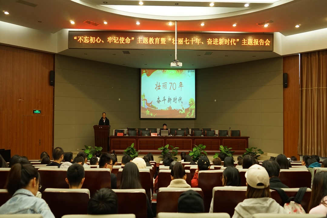 为深入学习贯彻习近平新时代中国特色社会主义思想,开展好学生党员主题教育,11月1日下午,党委学生工作部(处)组织学生党员在新城校区图书馆报告厅召开“不忘初心、牢记使命”主题教育暨“壮丽七十年、奋斗新时代”学生党员专场报告会,党委学生工作部副部长、学生工作处副处长王清华主持会议。