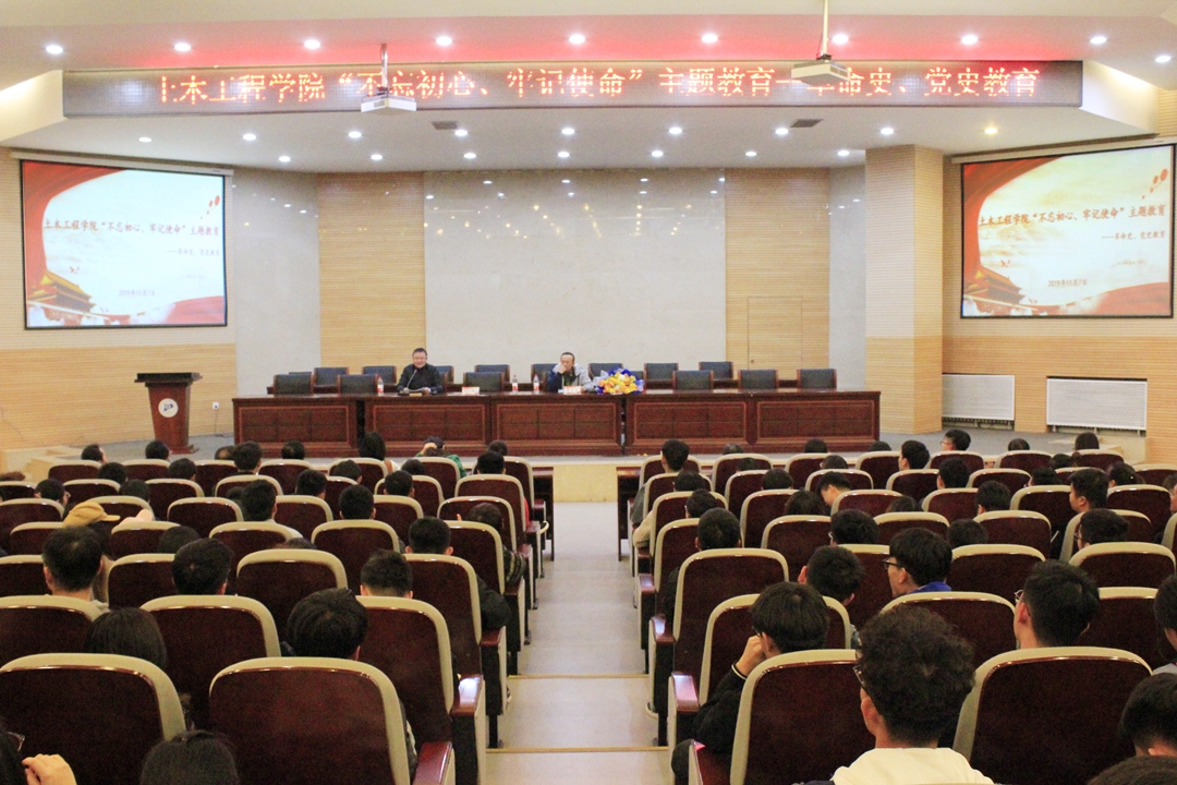 为贯彻落实“不忘初心、牢记使命”主题教育期间开展“党史、革命史”教育的要求,11月7日下午,土木工程学院党委在新城校区化工楼报告厅召开“党史、革命史”教育讲座。讲座由对越自卫反击战战斗英雄曹定尤主讲。学院党委书记那音巴雅尔主持讲座,师生党员及学生干部近五百人参加讲座。