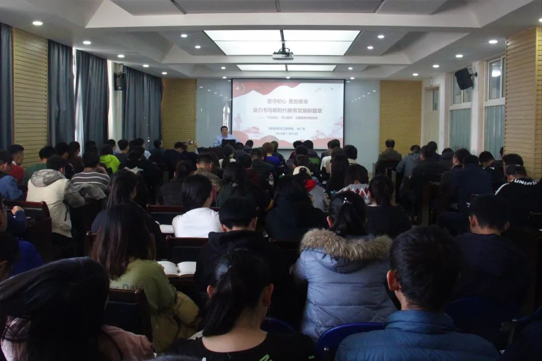按照学院“不忘初心、牢记使命”主题教育工作部署,进一步把学习贯彻习近平新时代中国特色社会主义思想引向深入,11月14日下午,材料科学与工程学院党委在新城校区工程技术楼512室召开“不忘初心、牢记使命”主题教育专题党课。学院党委书记车广东主讲,院领导班子成员、科级以上干部、全体师生党员参加。