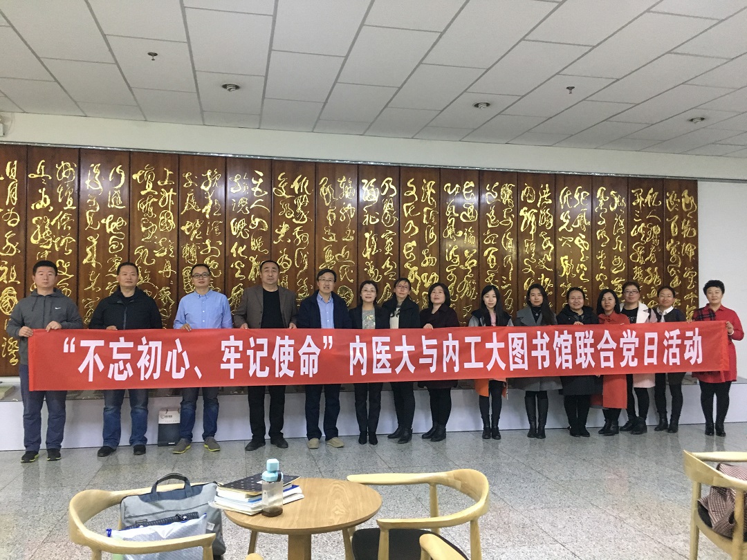11月1日下午和11月20日下午,图书馆党总支先后与内蒙古医科大学图书馆、建筑职业技术学院图书馆开展“不忘初心、牢记使命”主题教育联合党日活动。内蒙古医科大学图书馆副馆长王焕云一行13人、建筑职业技术学院图书馆馆长刘小红一行16人,分别在金川校区逸夫图书馆和新城校区图书馆开展交流学习活动。图书馆党总支副书记、馆长周文学,副馆长刘英和各支部书记参加交流活动。