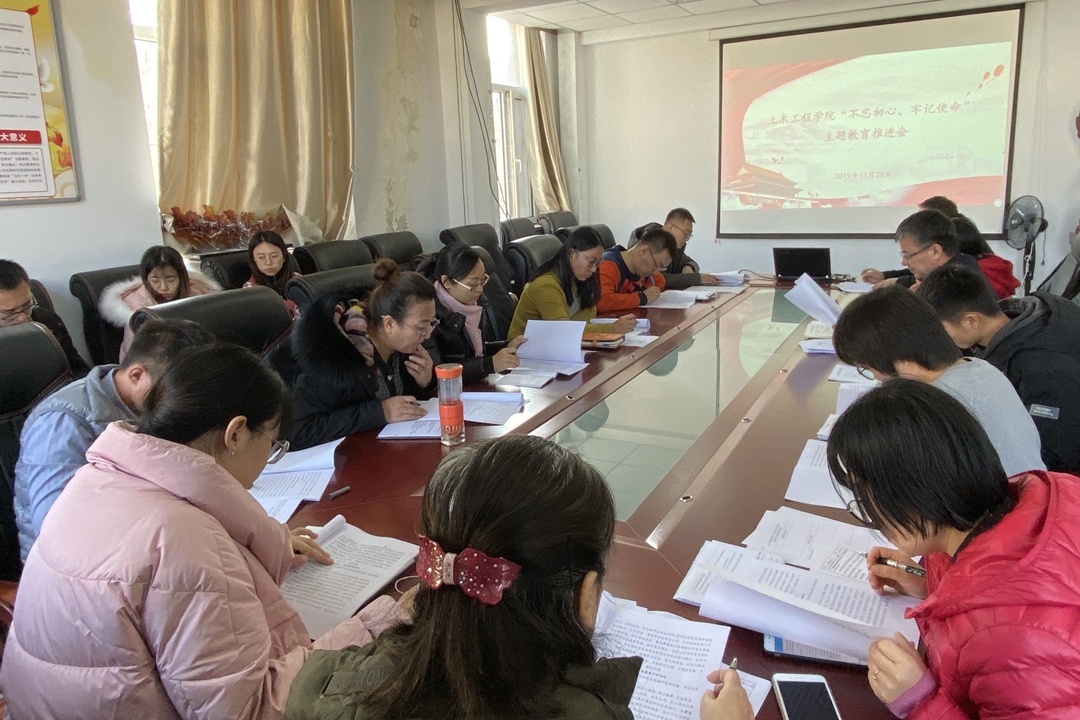 为进一步做好“不忘初心、牢记使命”主题教育工作,11月28日上午,土木工程学院党委在新城校区土木馆C座333会议室召开“不忘初心、牢记使命”主题教育工作推进会。学院党委书记那音巴雅尔主持会议,各支部书记参会。