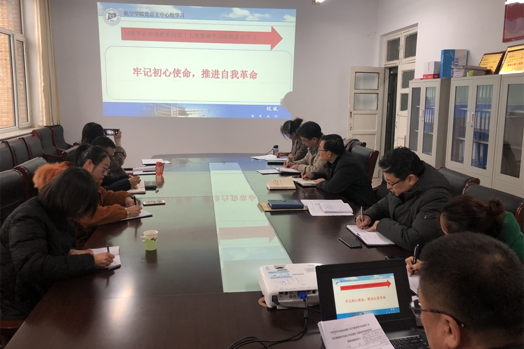 11月29日下午,航空学院党总支中心组在红楼党员活动室召开“不忘初心、牢记使命”主题教育第九次集中学习,党总支书记郭凌峰主持会议,党总支中心组成员、各党支部书记参加会议,学校主题教育督查小组成员列席会议。