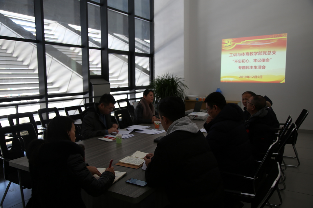 12月5日上午,工训与体育教学部党总支召开“不忘初心、牢记使命”主题教育专题民主生活会,党总支书记安雷主持会议,全体委员参加,学校主题教育督查小组成员到会指导,部分教工党支部书记列席会议。