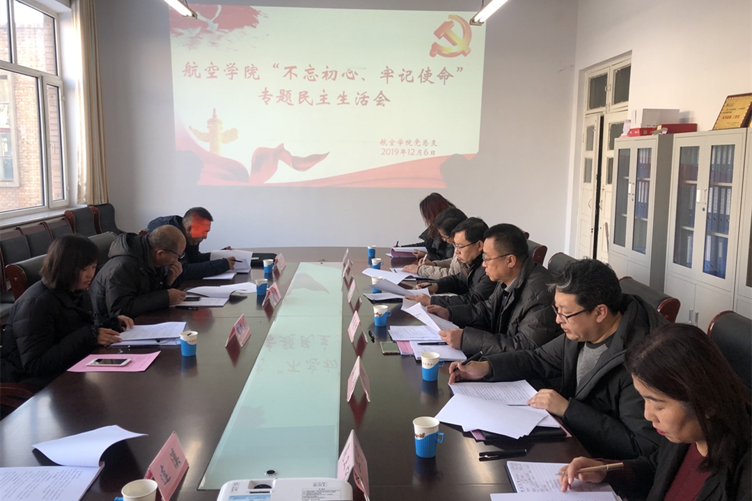12月6日上午,航空学院领导班子在学院党员活动室召开“不忘初心、牢记使命”专题民主生活会。校长姚德到会指导,学校主题教育督查小组成员列席会议,学院领导班子全体成员、党总支委员参加会议。学院党总支书记郭凌峰主持会议。