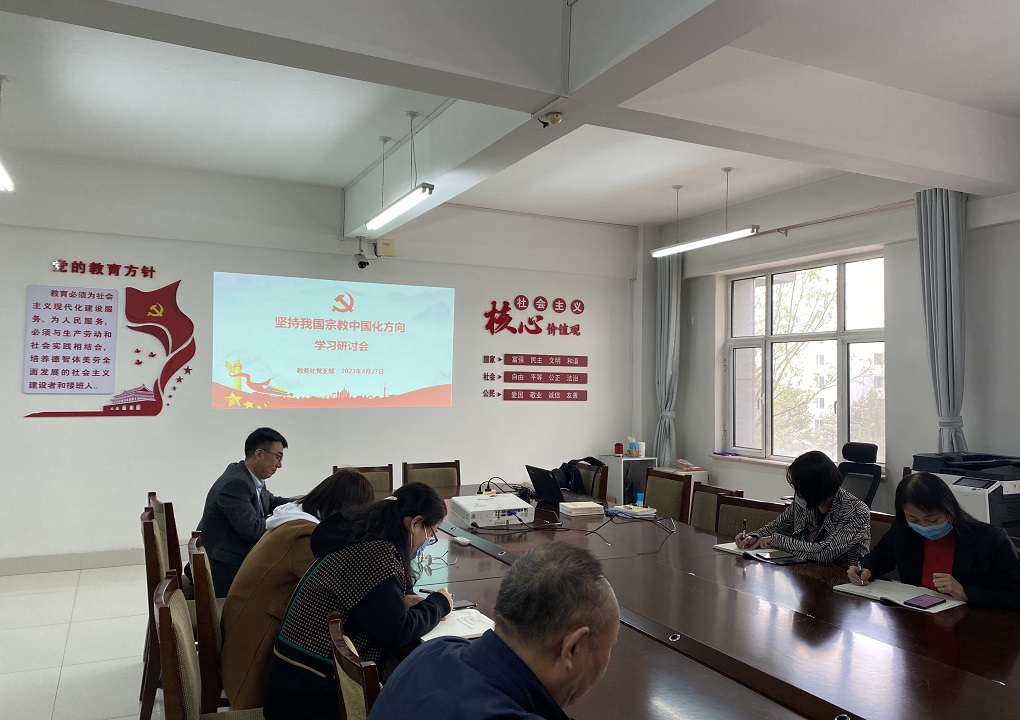4月27日下午,机关党委教务处党支部围绕铸牢中华民族共同体意识和坚持我国宗教中国化方向开展专题学习。通过专题学习,进一步加深了党员同志对民族工作和宗教工作的认识,大家表示会坚决贯彻党中央政策部署,像石榴籽一样紧紧抱在一起,共同建设美好生活、美好校园。