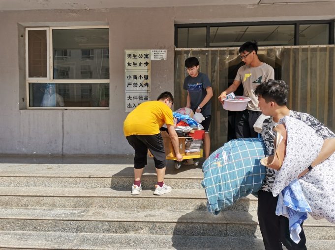 支部党员成立党员流动服务队,利用课余时间轮流值班,往返于毕业生寝室和快递站点,帮助毕业生打包行李送至快递站。根据不同需求,志愿者帮助搬送部分毕业生行李至校门处。志愿者们的付出换来毕业生的一致感谢。