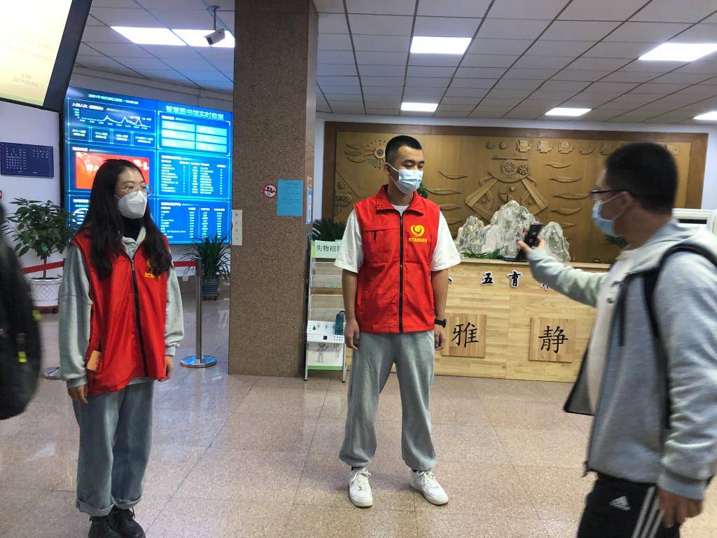 从早晨七点半到晚上七点40多名党员、发展对象分成10在两个地点轮替值班。他们身着党员志愿者服装在图书馆人流量高峰期引导同学们严格执行“预约入馆”制度并提醒同学们在馆期间须全程佩戴口罩等疫情防控下的入馆要求。在北区入口处对进出人员进行体温检测及健康码校园卡等相关证件的检查。未来一段时间,应用化学专业学生党支部将组织支部更多党员持续为疫情防控工作奉献力量并呼吁全校师生同舟共济科学防控坚决遏制疫情扩散。