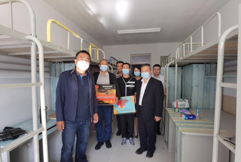 在第38个教师节来临之际,9月9日,能源与动力工程学院党委书记陈辉,院长孟克其劳,院党委副书记、副院长臧琛,副院长马剑龙,副院长刘建国,工会主席云峰,团学办公室主任马元波看望慰问防疫一线教职工,向他们送上节日祝福和诚挚问候,并送去节日慰问品,表达对防疫一线教职工浓浓的关爱和满满的“双节”祝福。
