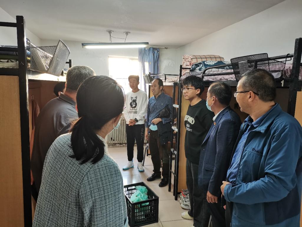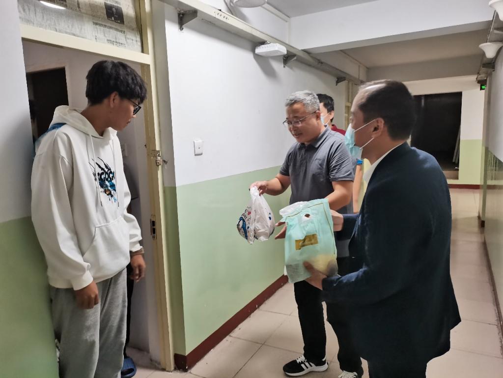随后,老师们来到过度宿舍,为在过度宿舍的同学们送上节日祝福。同学们透过窗户对院领导、老师们的慰问表达感谢。