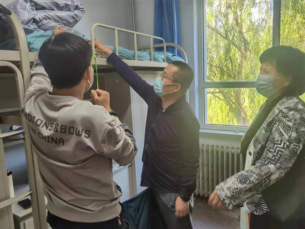 在走访慰问中,彭建兵与工作在学生宿舍区的师生亲切交谈,详细询问同学们的返校情况,实地查看教师值班室居住环境、卫生安全情况,了解学生返校工作开展情况,并强调一定要做实做细疫情防控工作以及学生返校后的系列工作。