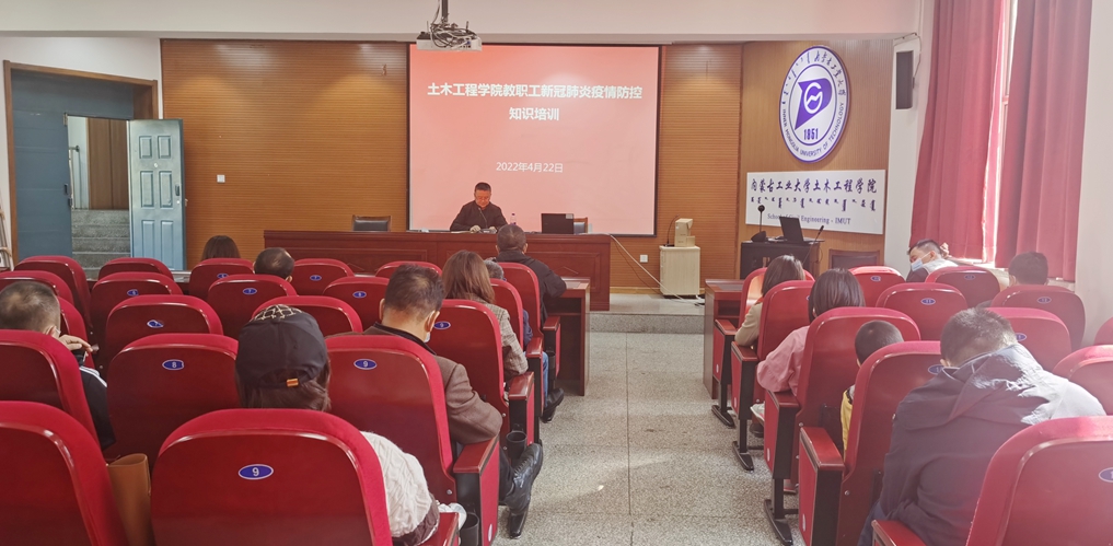 为切实提升学院常态化疫情防控和应急处置能力,进一步科学精准做好疫情防控工作,4月22日下午,土木工程学院召开教职工新冠肺炎疫情防控知识培训会。培训会以线上线下相结合的形式举行。全体院领导、科级干部(含支部书记)、行政人员、班主任在新城校区土木馆B219现场参会,其余教师线上参会。院党委书记那音巴雅尔主持会议。