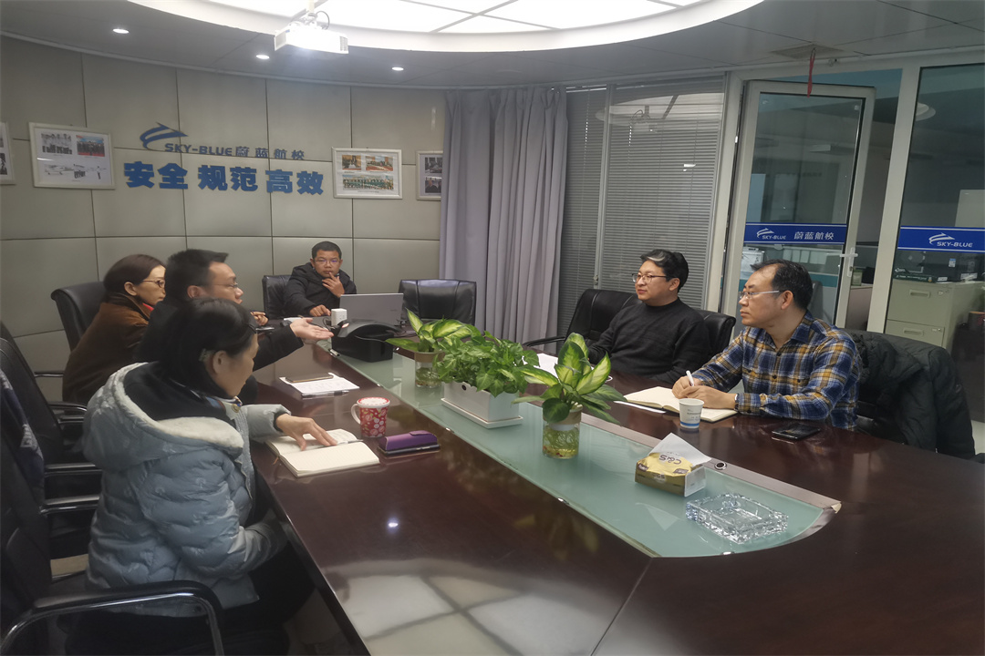 论坛活动结束后,航空学院一行前往湖北武汉,赴蔚蓝通用航空科技有限公司调研。蔚蓝航校长程道华、副校长李方林、校长助理辛博和刘志丹、市场部总经理吴贵华等公司领导,与航空学院一行进行专业共建座谈交流。期间,吴斌介绍了航空学院建设发展情况,重点就如何破解疫情对民航业的巨大冲击充分发挥校企优势合作培养飞行人才阐述了学院办学思路。程道华对航空学院一行到访表示热烈欢迎,介绍了蔚蓝航校的基本情况,结合自身优势提出了校企合作建议。