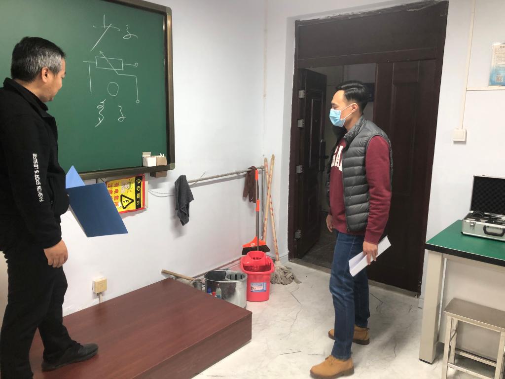 本次检查,重点查看了室内的疫情防控、用电安全等问题,特别是实验室和研究生工作室内有无私接电线和使用大功率电器的情况等。检查人员还对实验室安全设施配备管理、安全管理制度以及仪器设备维护等方面进行了重点检查,对检查中发现的问题进行梳理,并要求相关责任人限期整改。在检查过程中,姜鑫强调,各室安全负责人员要把安全巡查作为工作重点,所有师生都要严格遵守安全管理规章制度,要树立安全无小事的思想,对待安全绝不能的松懈麻痹,以疫情防控、防火、用电安全为重点,全面做好安全防范,要及时发现和排除各类安全隐患,确保人身及财产安全。