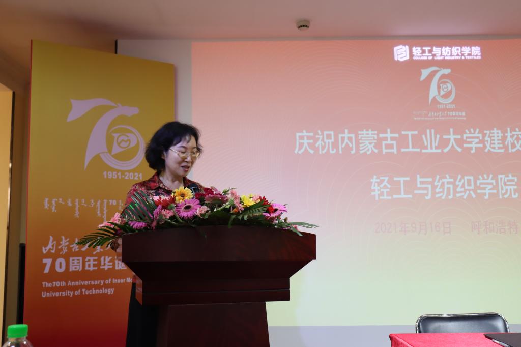 行业学会代表中国纺织服装教育学会执行会长倪阳生兄弟院校代表教育部高校纺织类专业教学指导委员会副主任、原天津工业大学纺织科学与工程学院院长王瑞教授合作企业代表内蒙古鄂尔多斯资源股份有限公司绒纺事业部副总经理国家羊绒制品工程中心主任高丽忠校友代表工业和信息化部国际经济技术合作中心工业经济研究所副所长田斌教师代表李美真教授分别发言,表达了对学校70岁生日的美好祝福。