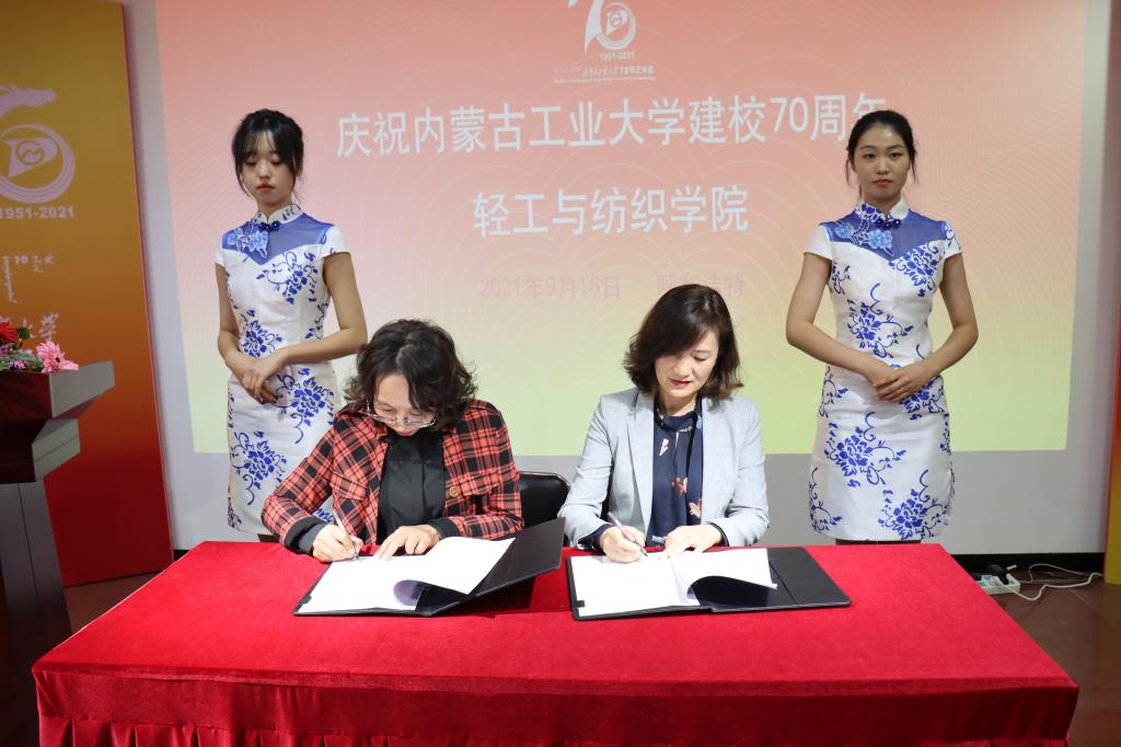 会上,学院副院长王利平与高丽忠副总经理分别代表轻工与纺织学院和内蒙古鄂尔多斯资源股份有限公司签署了校企合作人才培养协议,双方达成共识通过深化校企合作进一步提高人才培养质量、推进行业企业转型升级、促进地方经济社会发展。