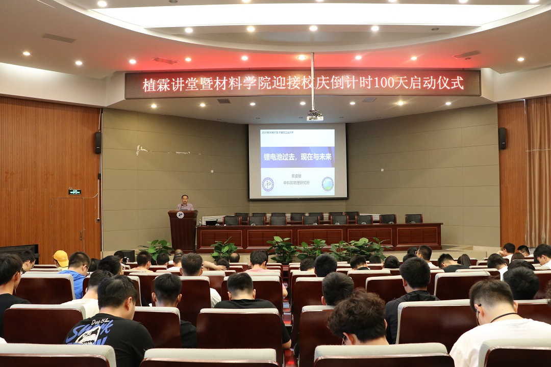 6月7日,材料科学与工程学院迎接建校70周年校庆倒计时100天启动仪式在新城校区图书馆报告厅举行应学院邀请,材料物理专业2002级校友、中科院物理研究所特聘研究员索鎏敏了题为“锂电池的过去、现在与未来的”《植霖讲堂》第二十九讲专题讲座。学院党委书记白朴存教授,副院长、副书记吕凯教授,副院长刘向东教授出席启动仪式副院长刘景顺教授主持大会青年教师代表、博硕士研究生及材料物理、材料成型及控制工程专业本科生180余人聆听讲座