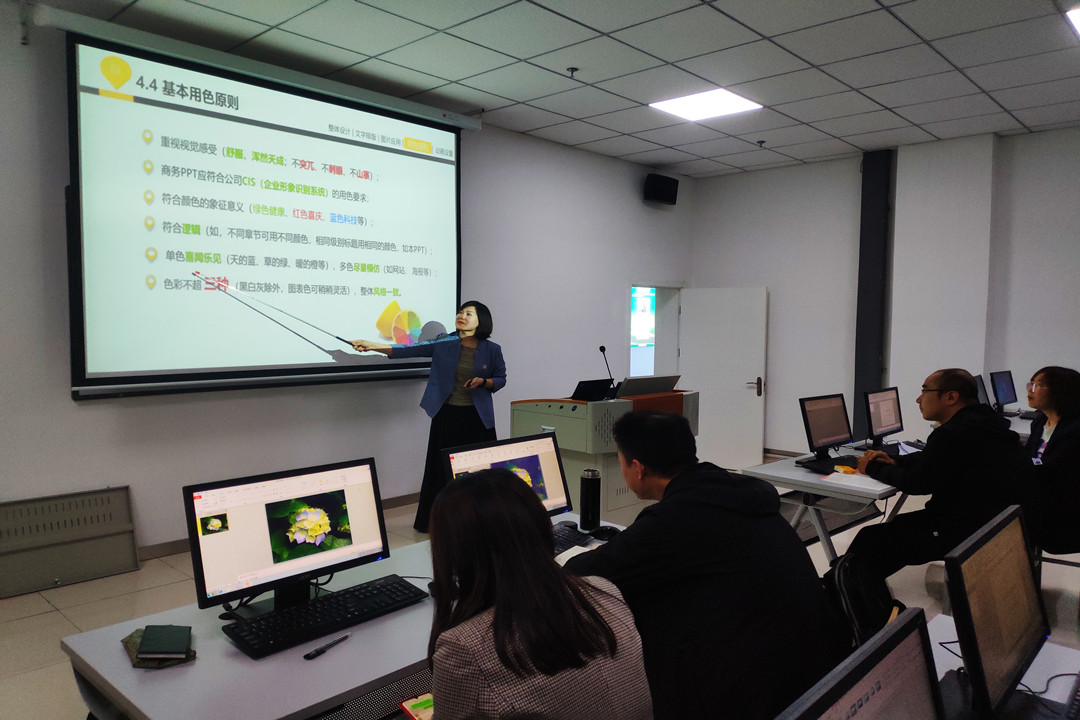 系列培训第三讲由beat365骨干教师团队成员、优秀教学质量获得者、创新训练中心党员教师贾翠玲主讲。她结合个人教学经验,主要围绕优秀课件发挥的教学效果和课件制作技能技巧2个方面进行详细的讲解和说明。讲授中,她与全体教师进行互动交流,现场气氛热烈,教师参与回应的积极性较高。