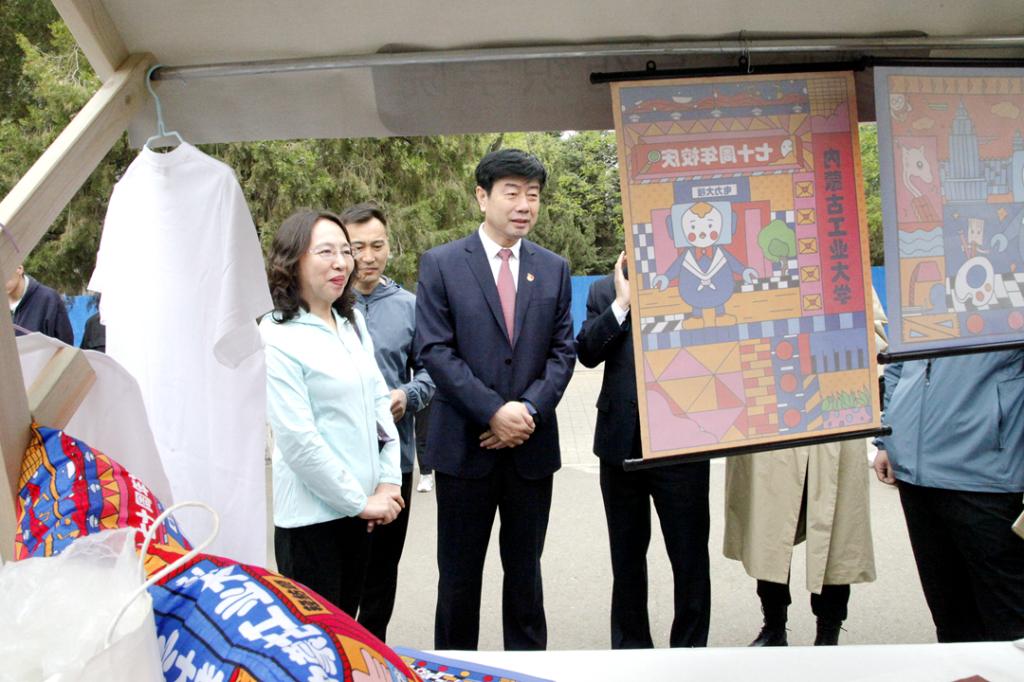 为迎接建校七十周年,拓宽实践育人路径,打造学生活动品牌,展示学院“三全育人”成果,5月13日至14日,轻工与纺织学院献礼七十周年校庆主题文创作品展在新城校区田径运动场南侧篮球场举行。校党委书记孙国权、副校长峻峰、纪委书记阿力坦嘎日迪和学校部分职能部门负责人莅临展览现场参观,对参展作品给予了高度评价,并对轻工与纺织学院专业建设所取得的成果给予了肯定。