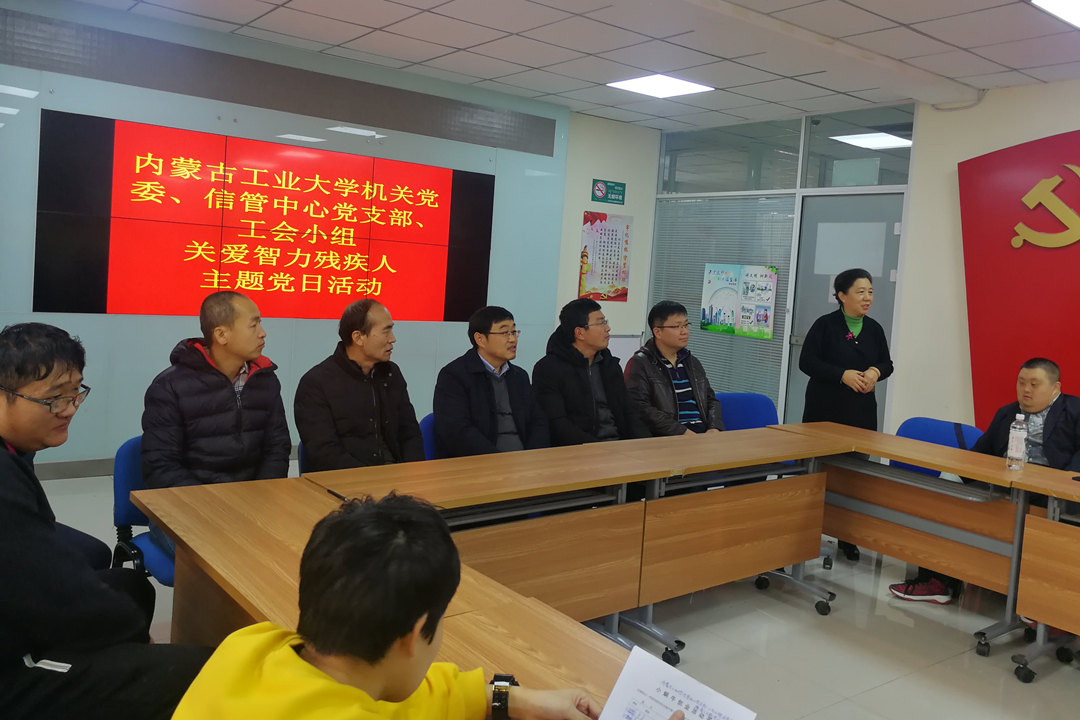 12月8日下午,信息化建设与管理中心组织全体党员和分工会成员,前往位于呼和浩特市赛罕区人民路办事处水文社区的阳光蜗牛智力残疾人工疗康复中心,看望患有唐氏综合症的孩子们