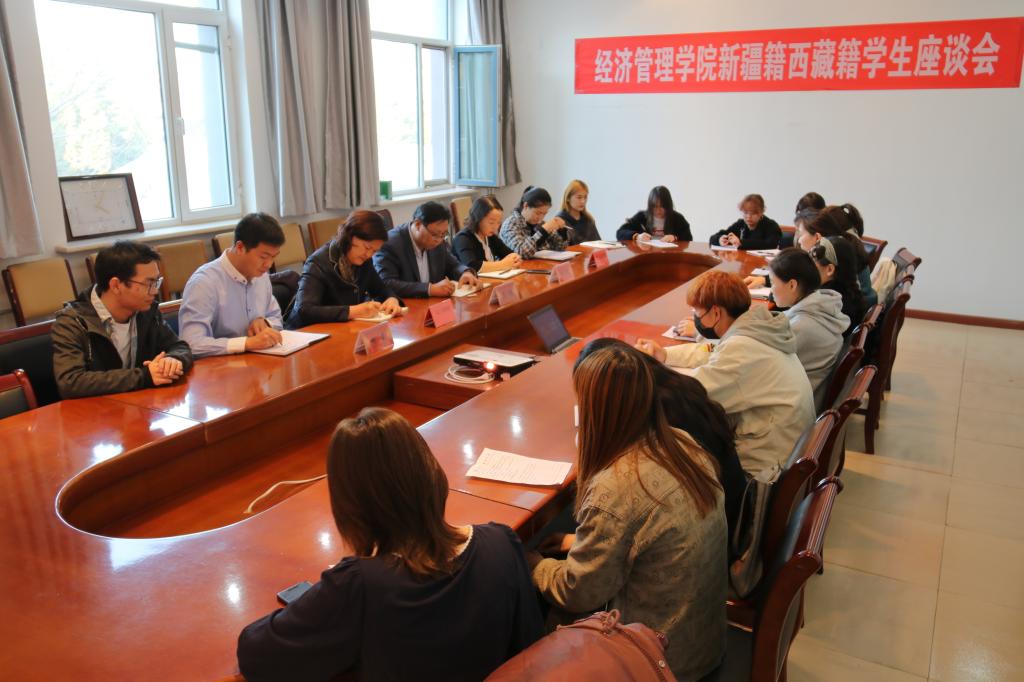 10月29日下午,经济管理学院在学院318会议室组织召开新疆西藏籍少数民族学生座谈会。学院党委副书记、副院长冀强,新疆派驻beat365官方网站学生管理服务教师乌仁其梅格,学院团学办公室主任斯琴毕力格、副主任林森和17名新疆、西藏籍少数民族学生参加座谈会。团学办公室辅导员特日格勒主持会议。