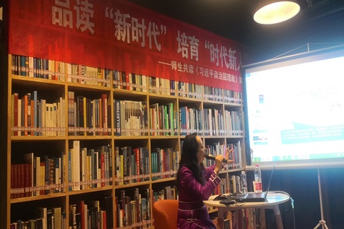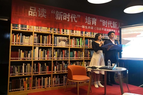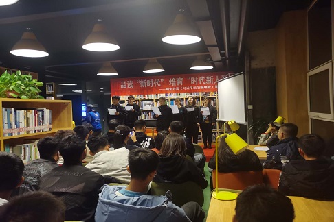 10月26日晚图书馆与马克思主义学院在新城校区建筑学科馆联合举办师生共读《习近平谈治国理政》第三卷活动。马克思主义学院副院长宁琳琳主讲,图书馆学生管理委员会朗读爱好者朗读。图书馆副馆长刘英主持活动。图书馆党总支书记郭俊平及部分师生代表参加活动。