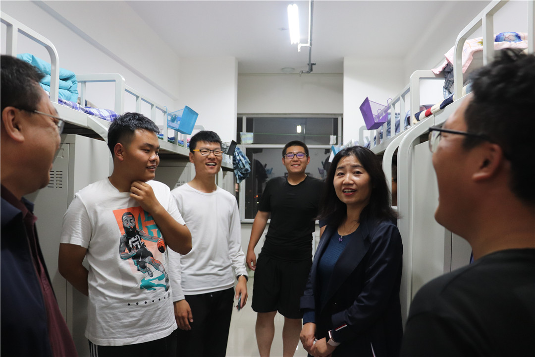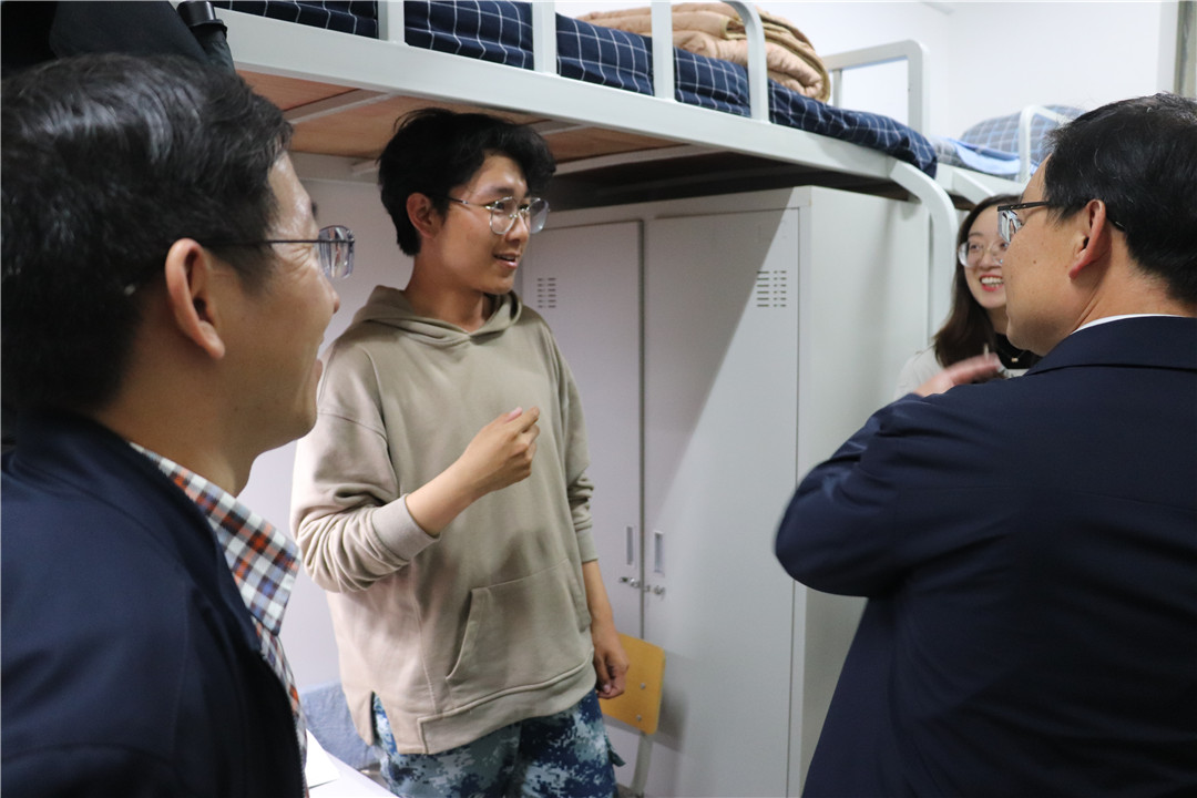 在新生宿舍,老师们与新生亲切交谈,慰问他们来校后的适应情况,表达了对新生的殷切希望。同时,了解了同学们的家庭情况和心理状态,提醒同学们提高安全意识,注意用电安全、网络安全、出行安全等,保证宿舍和个人卫生,做好秋冬季传染病防护,并希望同学们尽快完成角色转换,学会独立生活和自主学习,尽快融入多姿多彩的大学生活。