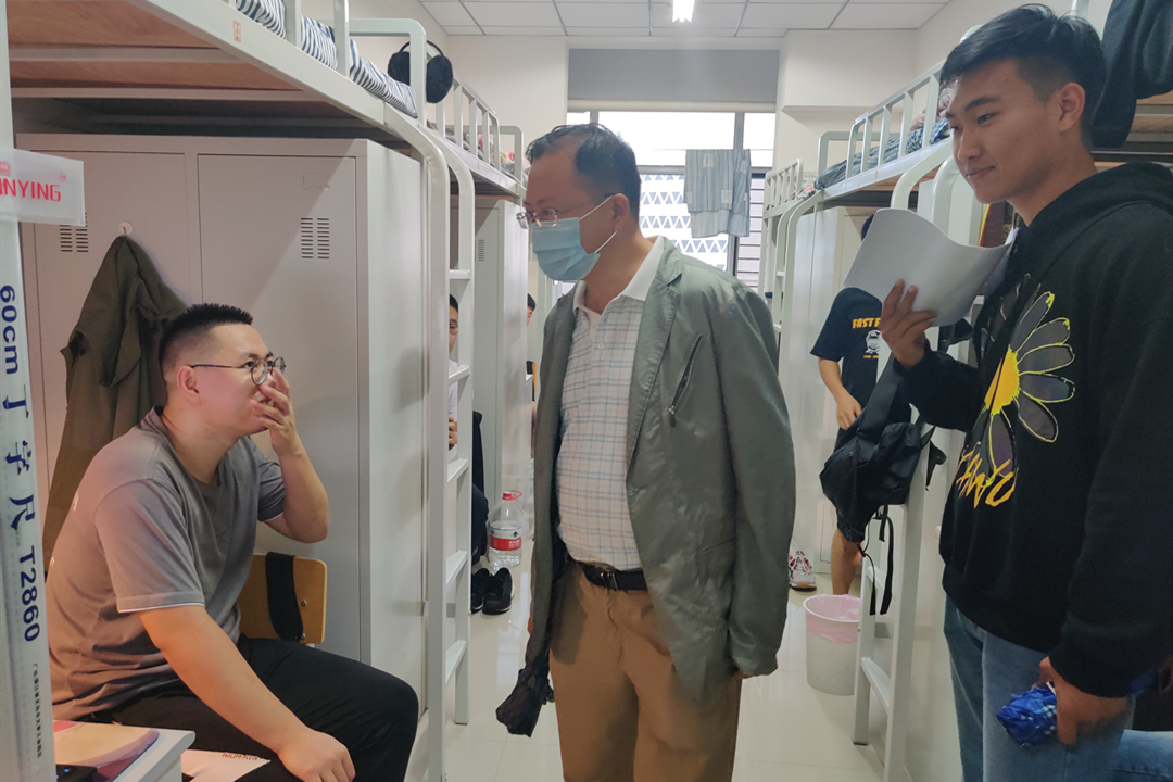 走访过程中,各位老师向公寓值班员详细了解学生的整体情况,分专业走进宿舍仔细检查各宿舍的生活设施、卫生环境等,与同学们进行深入交流,了解学生上学期未返校的思想动态以及返校后的相关情况,并对开学后学习生活等进行了细致安排。