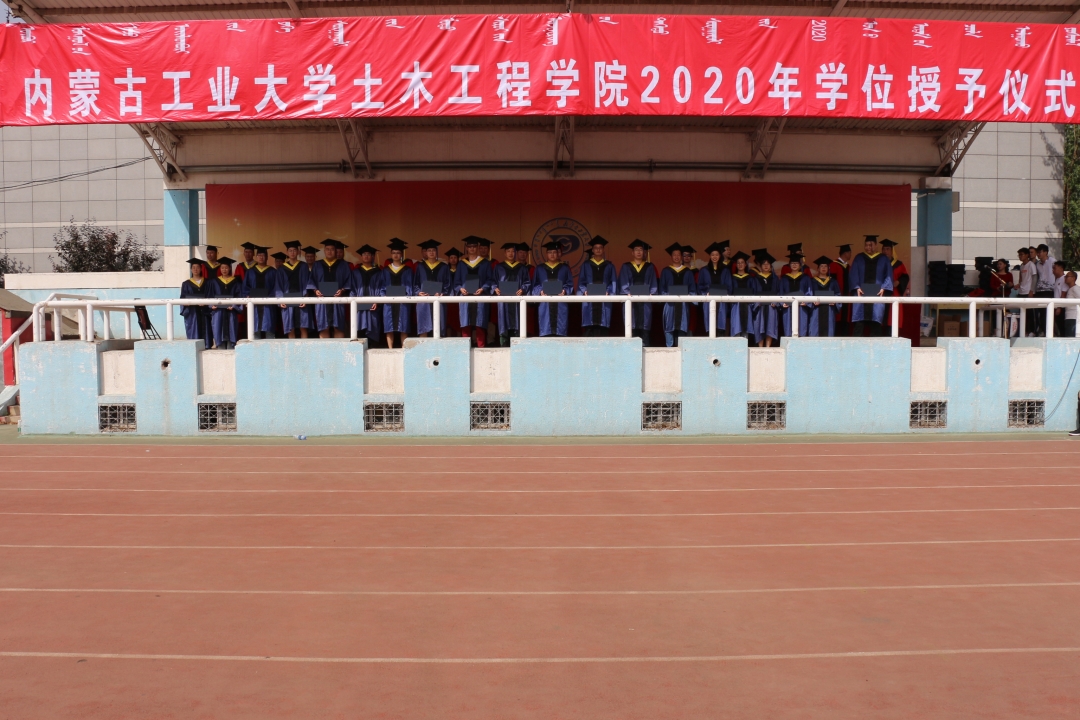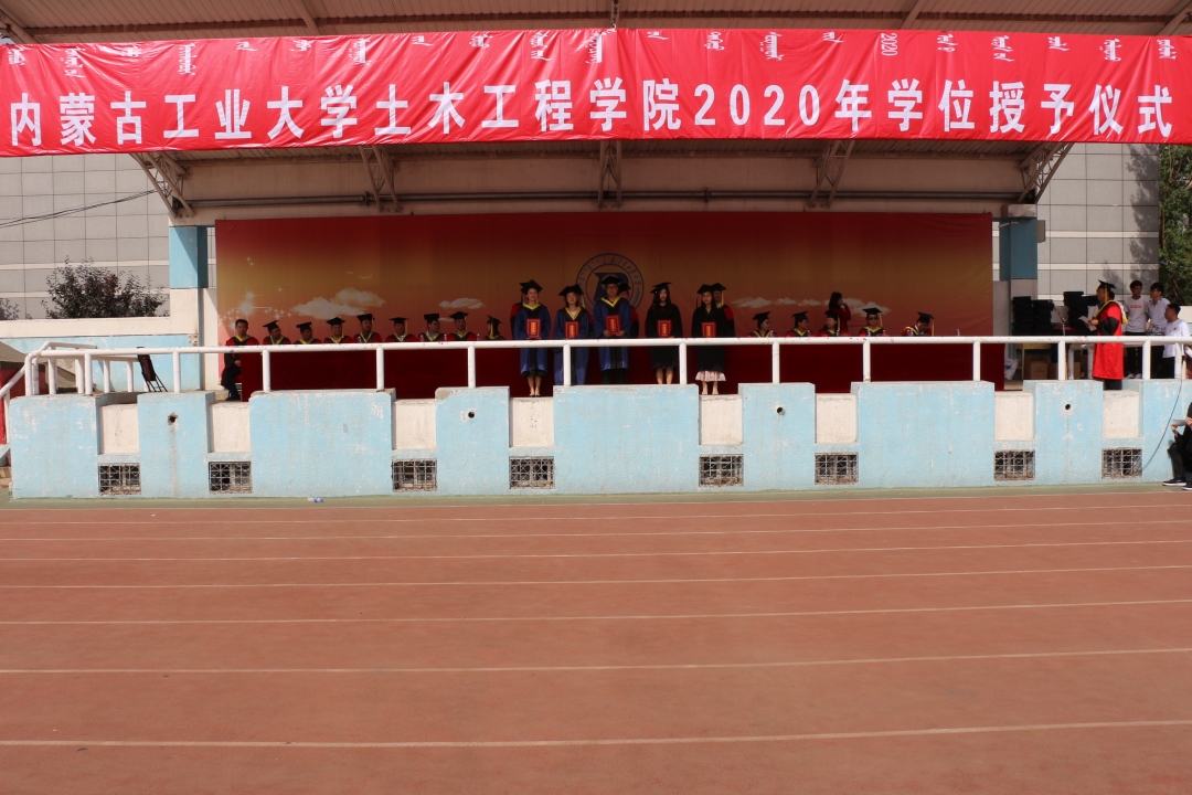 学位授予仪式在庄严的国歌声中拉开帷幕。院党委书记那音巴雅尔宣读土木工程学院荣获自治区级、校级优秀毕业生受表彰名单。学院对获奖毕业生进行表彰副院长崔亚楠冯斌分别宣读2020届授予硕士学位和学士学位学生名单,全院第一批次毕业生中59名硕士研究生和509名本科生获得相应学位。受校长、校学位评定委员会主任委员姚德教授的委托,学院领导和教师代表为2020届硕士和本科毕业生拨穗正冠、颁发学位证。