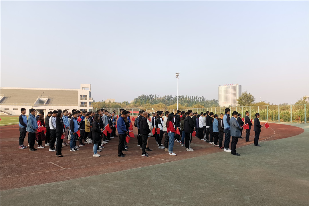 清晨7点,准格尔校区举办了庄重肃穆的升国旗仪式,学院领导班子成员、准格尔校区师生、物业员工参加升旗仪式。师生早早等候在报告厅,迎接一场举国盛会。当直播中70响礼炮响彻云霄,雄壮的义勇军进行曲奏响的时候,在场的师生员工肃然庄重,全体起立,高声齐唱国歌。大家认真聆听习近平总书记发表重要讲话。