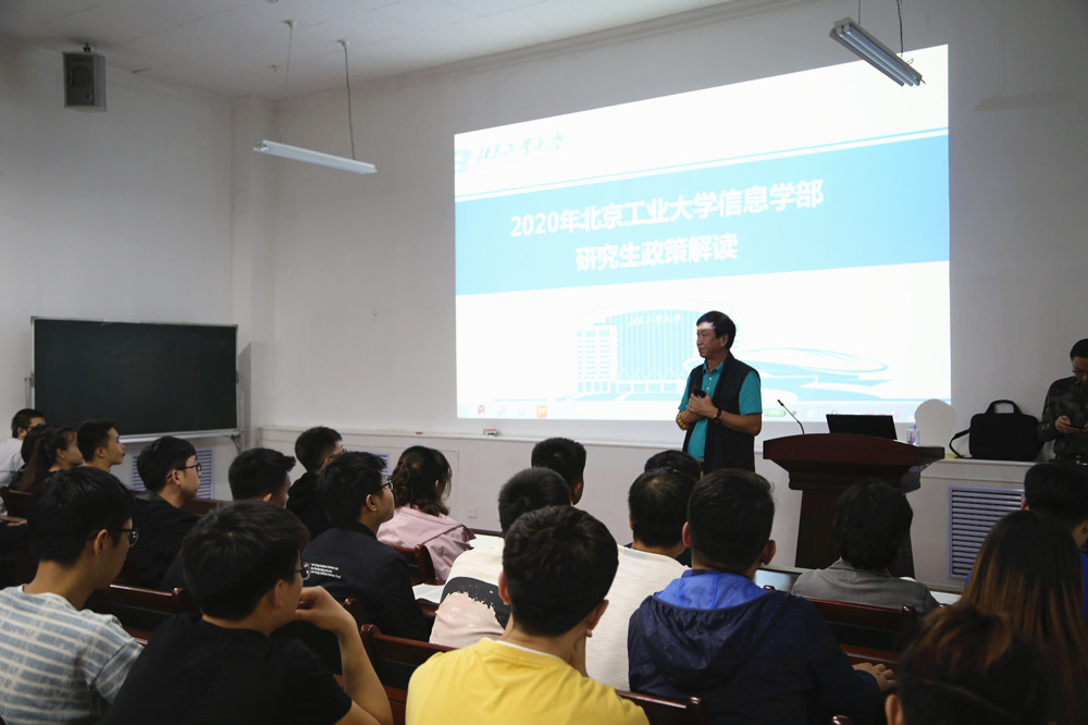 9月23日晚,信息工程学院邀请北京工业大学国际合作与对外招生办公室主任蒋有明为学院本科生解读2020年研究生招生新政策。学院三、四年级学生以及数据科学与应用学院电力学院的部分大四学生参加讲座。