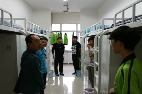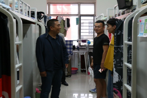 检查中,各位老师向公寓值班员详细了解学生的整体情况,仔细检查各宿舍的生活设施、卫生环境等,重点对消防安全、用电安全等进行检查。同时通过现场班会的形式与同学们进行深入交流,了解学生近期思想动态和学习生活情况,提醒学生注意食品安全及饮水安全等。