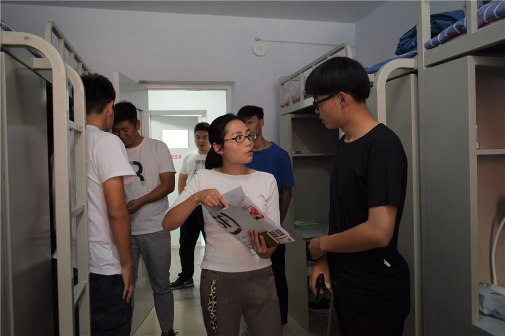 走进每进一间宿舍,班主任们都仔细询问新生的各项情况,查看宿舍里的各项设施是否完备,叮嘱新生们要注意自己身份的转换,加快适应大学生活的节奏,珍惜大学时光最重要的是提醒新同学要注意人身安全和财产安全,贵重物品保存妥当,拒绝并举报上门推销者,有困难、有问题就向老师或宿管反映。此外,要与舍友建立和谐良好的关系,互帮互助一起进步