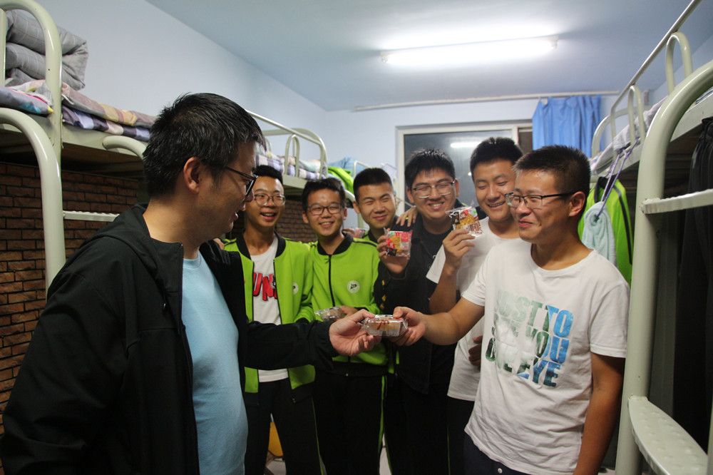 上午彭建兵、董小倩及研究生班主任一起走访了学院各研究生工作室,询问研究生的学习工作情况,鼓励大家要刻苦钻研学术。晚上全体本科生班主任深入走访宿舍,了解学生思想动态,叮嘱同学们要努力学习,节假日外出注意安全。此外在看望过程中,老师们还为每一位学生赠送了工大“校徽月饼”,表达了学校、学院对学生的关心和爱护。
