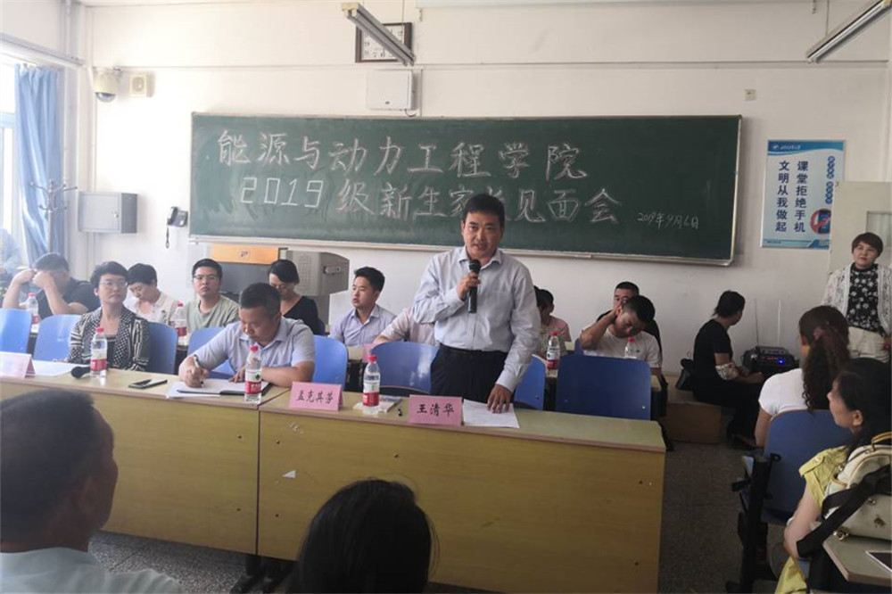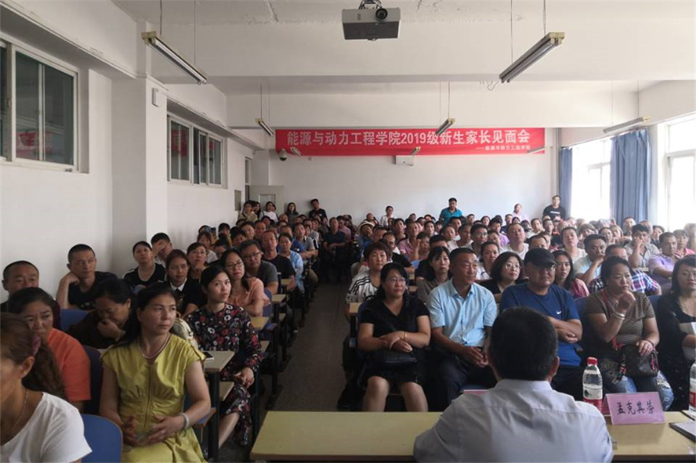9月6日,能源与动力工程学院在新城校区第二教学楼202举办新生家长见面会。院长孟克其劳副书记、副院长李欣欣副院长王清华以及2019届新生班主任200余名新生家长参加见面会