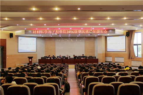 为加强学院学风建设,严肃考风考纪,引导学生端正学习态度,以健康的心态迎接考试5月30日晚,材料科学与工程学院在新城校区第三教学楼报告厅召开2016级学风建设大会2016级全体学生参加。学院副院长刘景顺、吕凯2016级班主任代表乔新春、刘君王莉萍、白亮参加大会。院团委书记马晓凤主持会议。