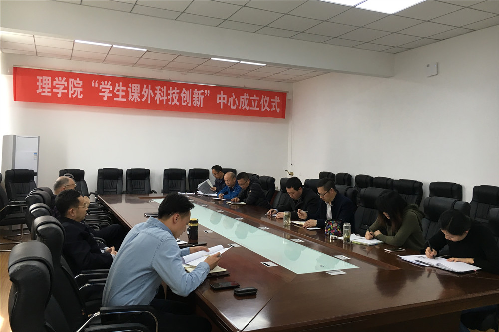 为培养学生的创新意识、创新思维和创新能力,以学生科技创新为载体推动学院学风建设4月1日下午理学院学生课外科技创新中心成立仪式工作研讨会在新城校区实验楼516会议室举行。学院党政领导团委、教学科研服务中心、实验中心相关负责人,各系主任及学生课外科技创新中心指导教师参加仪式并进行工作研讨