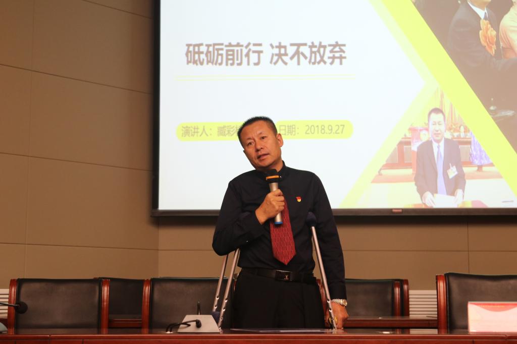近两个小时的励志演讲,臧彩楼拄着双拐全程独脚站立,深情讲述了他的多舛命运、坎坷人生。被火车轧断腿,大火中烧伤,痛失妻女弟弟,面对人生的不幸,他没有被打倒,而是选择毅然决然站起来,勤学手艺把握商机,开小店、办工厂、建公司,一步步艰苦创业砥砺奋进,最终走出困境,走向成功作为一名中国共产党员他不忘党和国家的关怀,用自己的实际行动回报社会通过创办养老院帮助残疾人就业举办公益励志演讲等,传递社会正能量。2014年臧彩楼被人力资源社会保障部、中国残疾人联合会评为第五届全国残疾人自强模范”,受到习近平总书记等党和国家领导人的亲切接见。