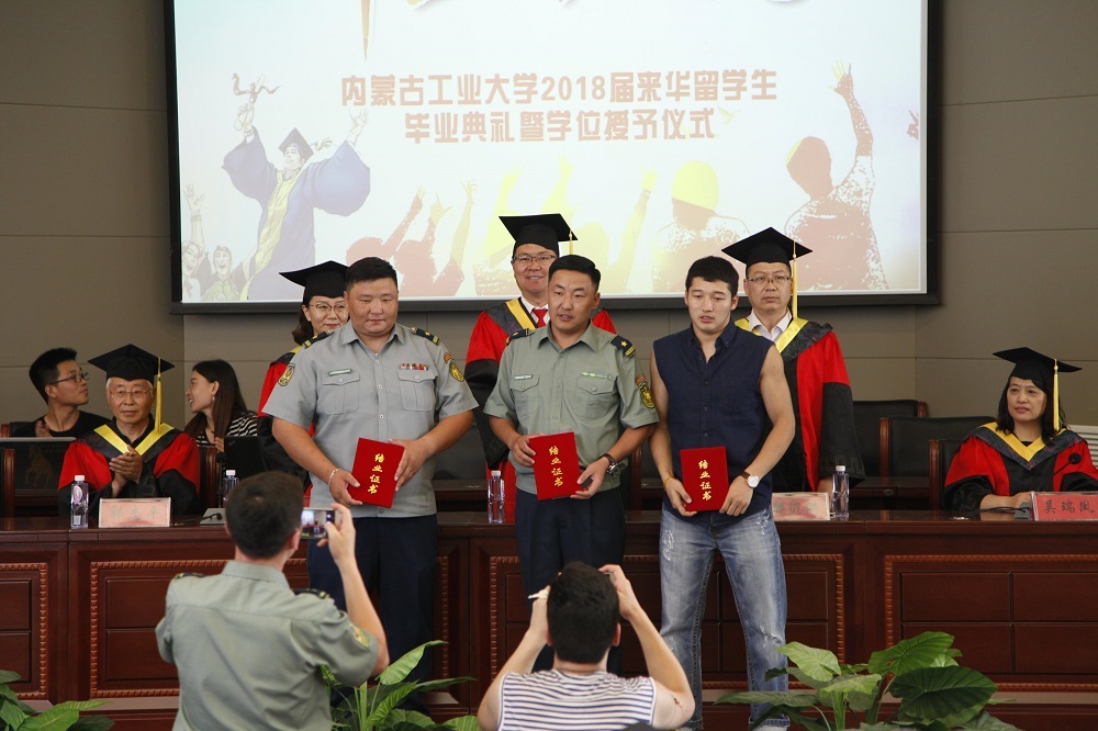国际教育学院院长冯银虎对留学生们克服困难、顺利完成学业、开启新的精彩人生表示祝贺,对同心协力为留学生教育提供优质管理服务、支持帮助留学生培养和国际交流与合作工作的单位和部门表示感谢。希望毕业生永远记得在内蒙古、在beat365官方网站度过的青春岁月,回国后继续学习,服务自己的祖国和人民,并成为“一带一路”倡议的友谊使者和中坚力量,为中国和本国的合作交流做出贡献。