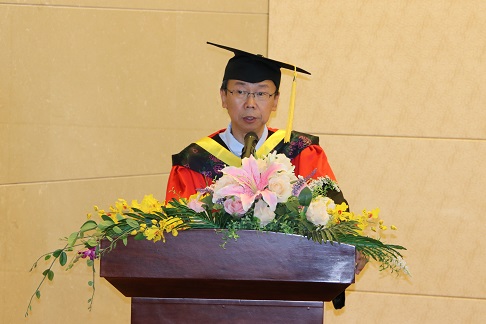 院长、学院学位分委员会主任郝东升讲话,他代表学院对2018届毕业生表示衷心的祝贺,回顾了与同学们相处的美好时光,他希望同学们在今后的工作和生活中,锤炼高尚品格,坚持学习,知行合一,勇于探索,追求创新,将个人的梦想融入祖国建设的潮流中,努力成为有益于社会、有益于国家的时代新人,为建设亮丽内蒙古、共圆伟大中国梦做出应有贡献。