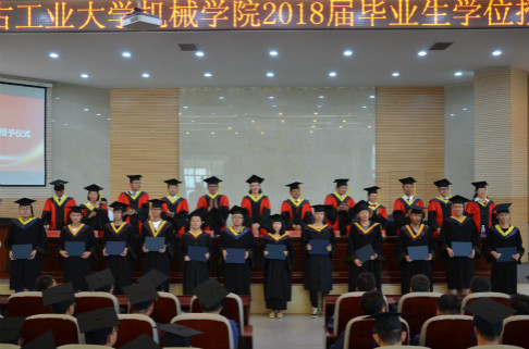 7月5日下午,机械学院在新城校区第三教学楼二楼报告厅举行2018届毕业生学位授予仪式。学院领导班子成员、各教学单位负责人、毕业生班主任和2018届全体毕业生参加仪式。副院长冯小虎主持仪式。