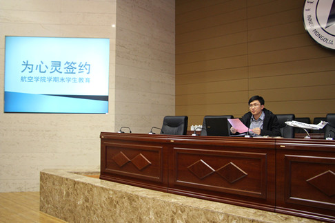 为教育引导学生端正学习态度,遵守校纪校规,严肃考风考纪,提高诚信意识, 1222日下午,航空学院在教研楼第二报告厅开展“为心灵签约”学期末学生教育活动。学院全体学生参加。学院团学负责人王成主持。